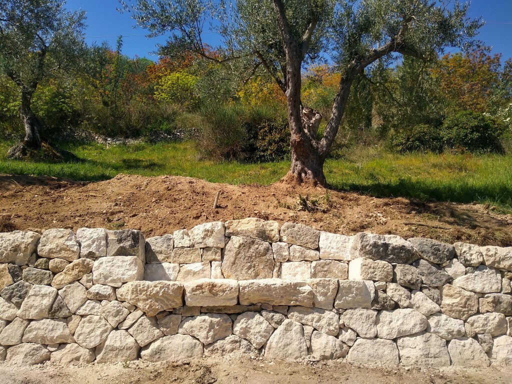 Chaque réalisation est effectuée dans le respect des règles de l’art qui sont décrites dans « Le Guide des bonnes pratiques de murs de soutènement en pierre sèche« . Chaque pierre est taillée manuellement, avec les outils dédiés.