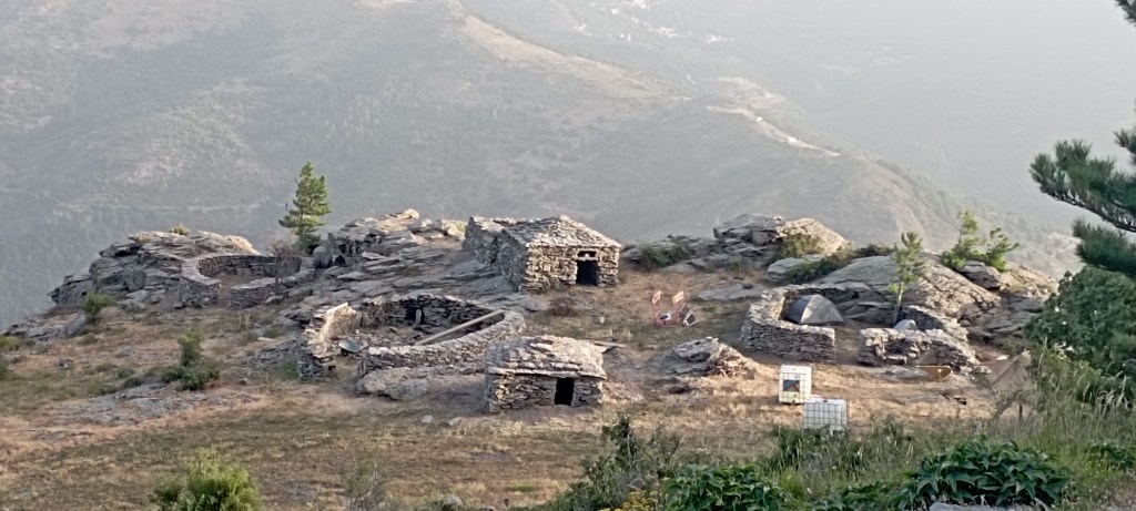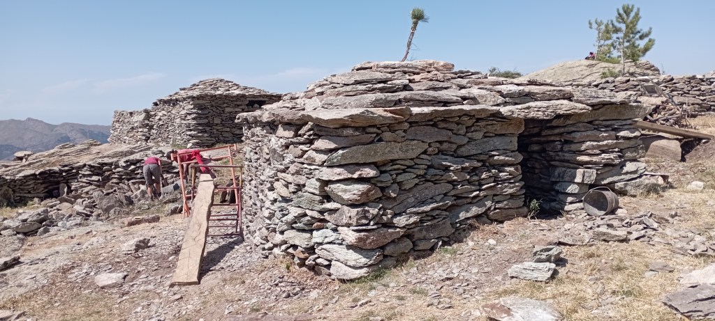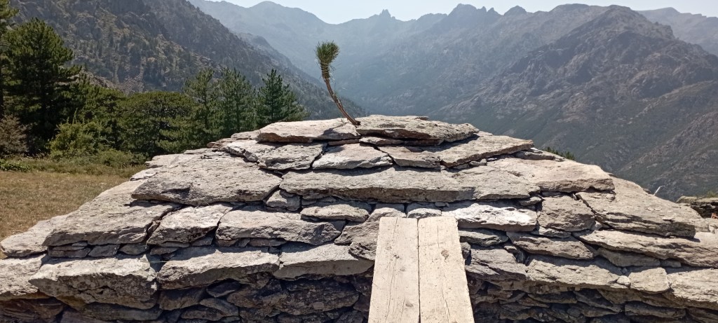 Restauration de cabanes et d’enclos en pierre sèche (granite). Collaboration avec l’entreprise « Qui vient de la Pierre et Bois » de Charlotte PEYRONNENC. Réalisé pour la commune d’Olmi Cappella en Corse.