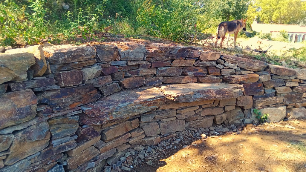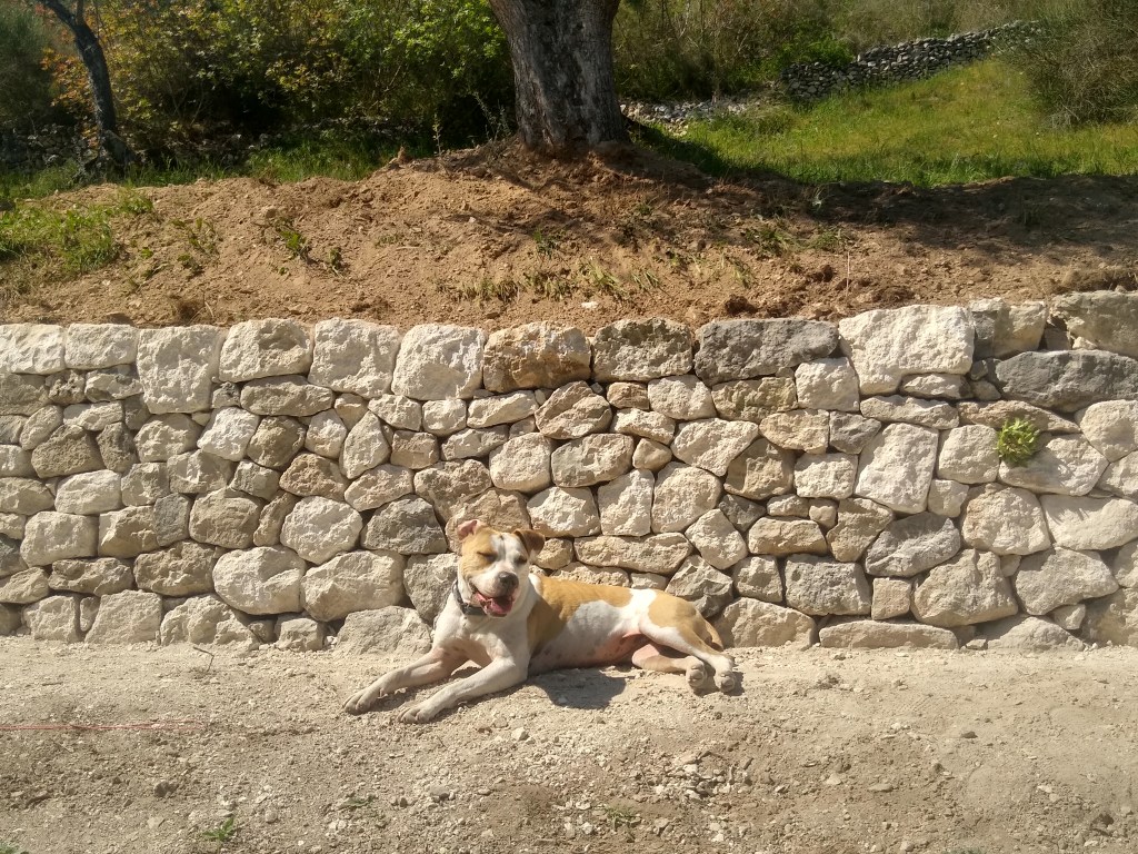 Construction de 5 murs de soutènement de terrasses en pierre sèche (schiste), dont un mur en demi-cercle. Réalisés dans la commune de Céret pour un particulier, en collaboration avec l’association « Murailler de Provence ».