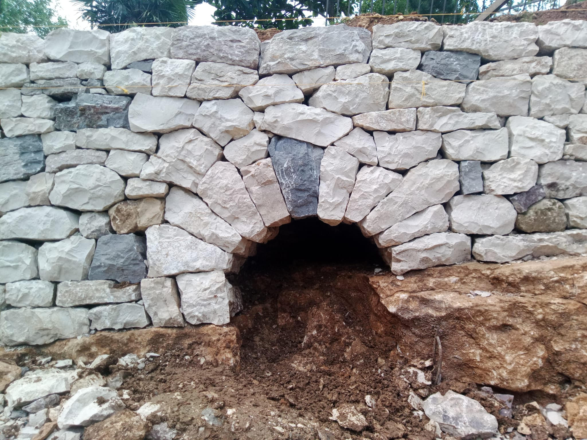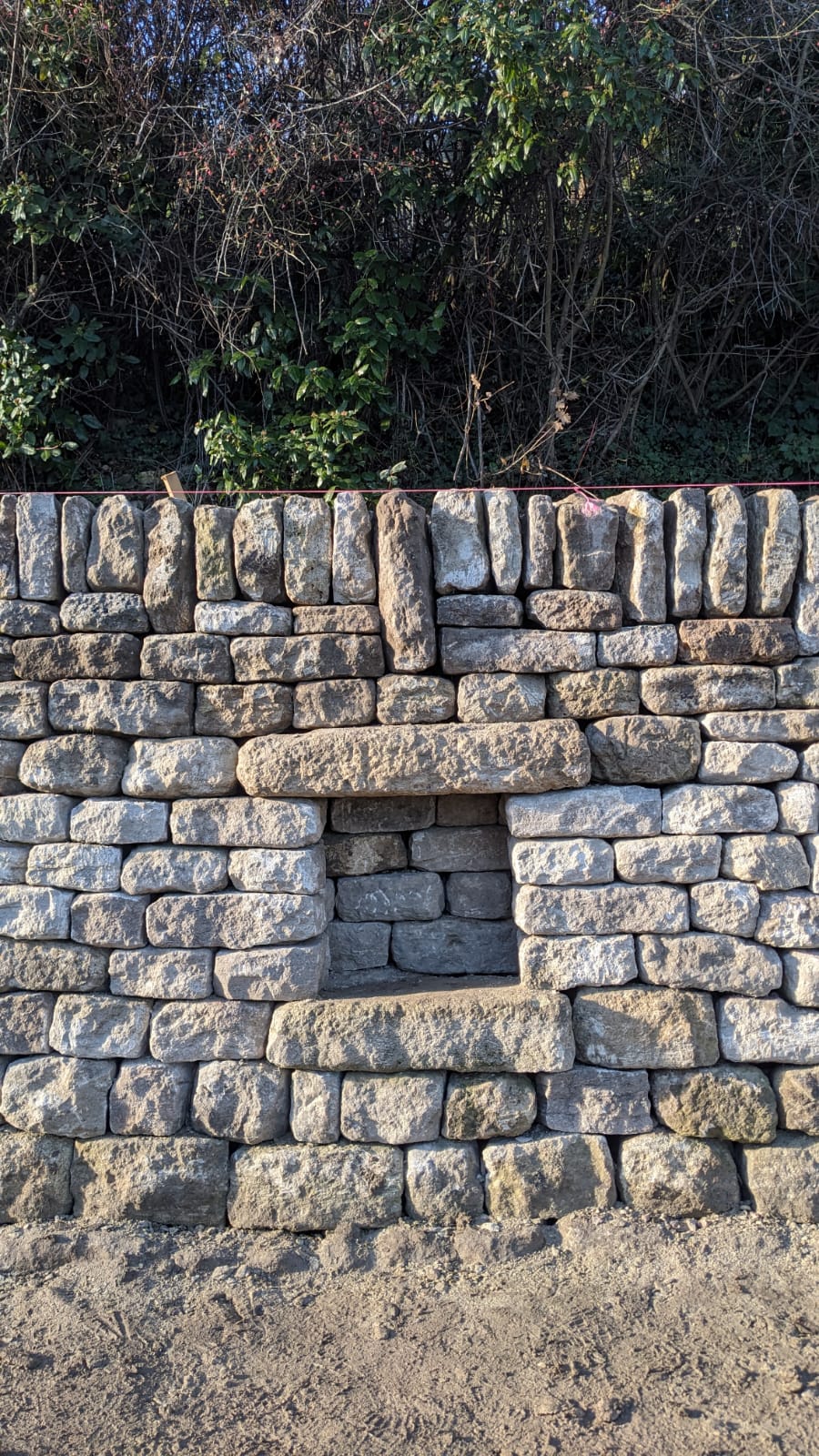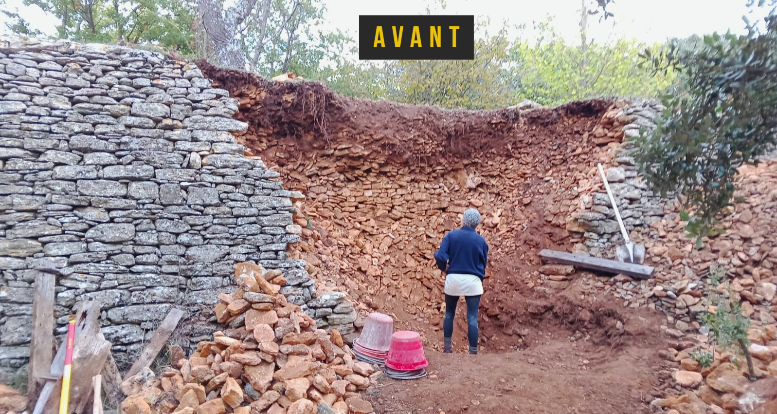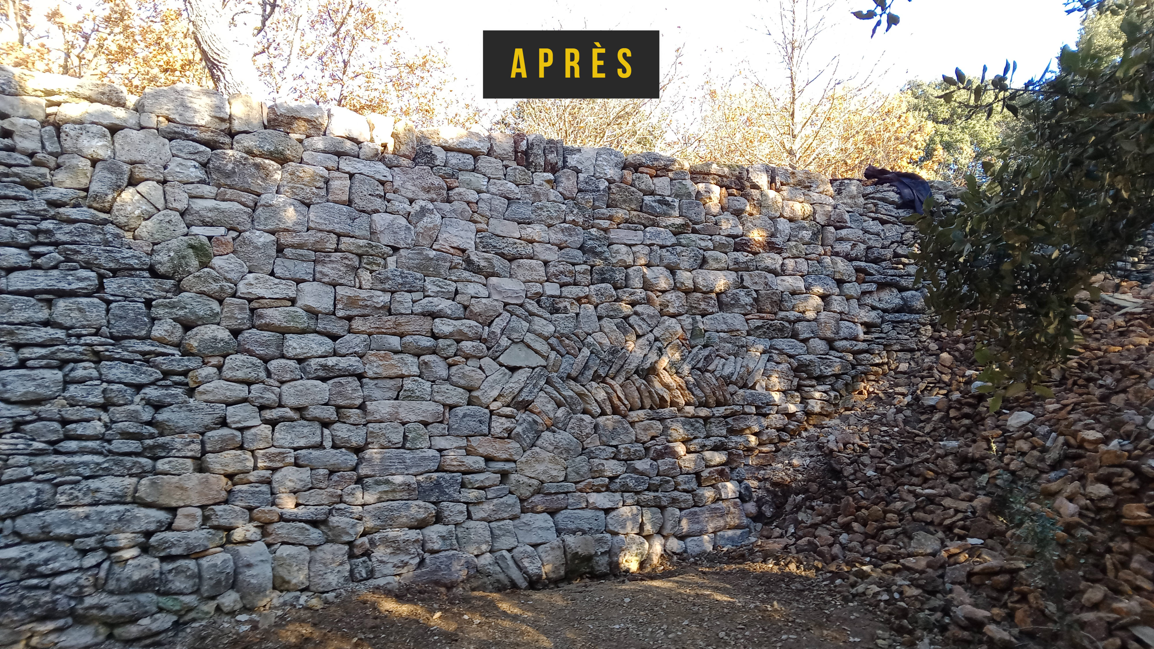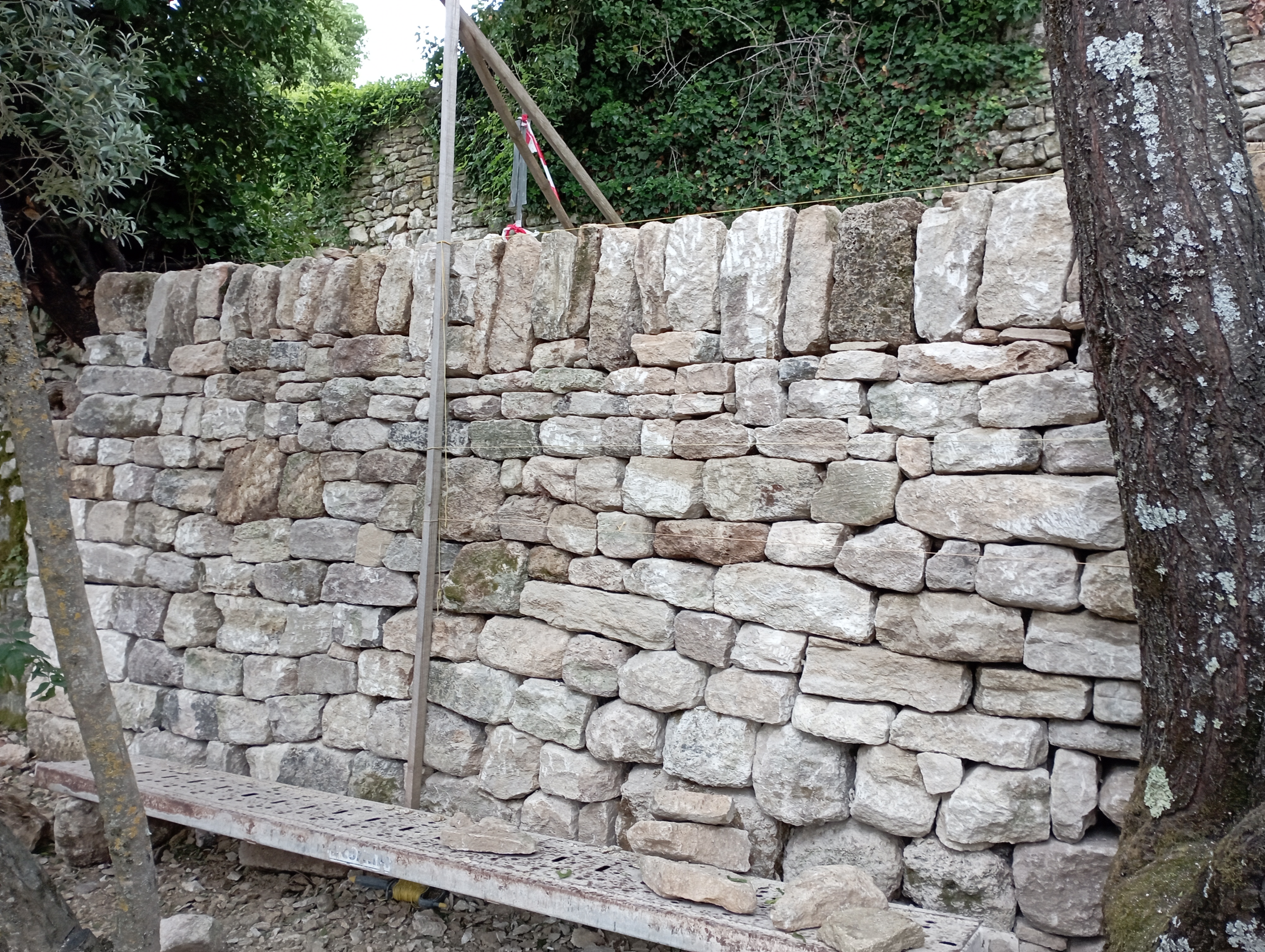 Construction d’un mur de soutènement de 3,80 mètres de haut et 16 mètres de long en pierre sèche (calcaire).
